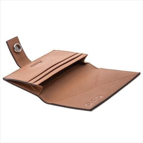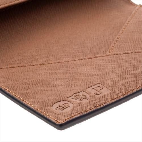 しぼ感とマットブラックが美しい、上質な牛本革を使用した二つ折りカードケース。フラップ式で角形ACモノグラムコンチョで開閉し、外側はブラック、中はベージュの洗練された高級感のある配色。裏のACモノグラム革パッチ、内側にホールマーク刻印など拘りが詰まったオリジナルデザイン。大人の品格と機能性を兼ね備えた、こだわりの逸品です。
