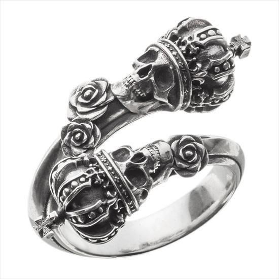 ツインスカルクラウンリング 指輪 AKR0079 Twin Skull Crown Ring シルバーアクセサリー Silver jewelry