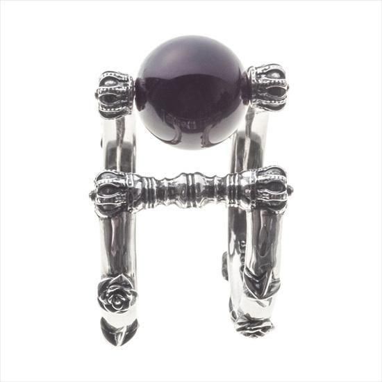 薔薇と星が交互に並ぶ華やかな2連イヤーカフ。耳の内側にはオニキスボールが輝き、現代アートのような印象的なデザインに。2連をつなぐ支柱には王冠モチーフと、アンティーク家具の脚を思わせる繊細な彫刻を施しました。ピアスホール不要で、耳に挟むだけの簡単装着。しっかりフィットし、着け心地も快適です。裏面にはブランド名と925刻印、3つのホールマーク付き。